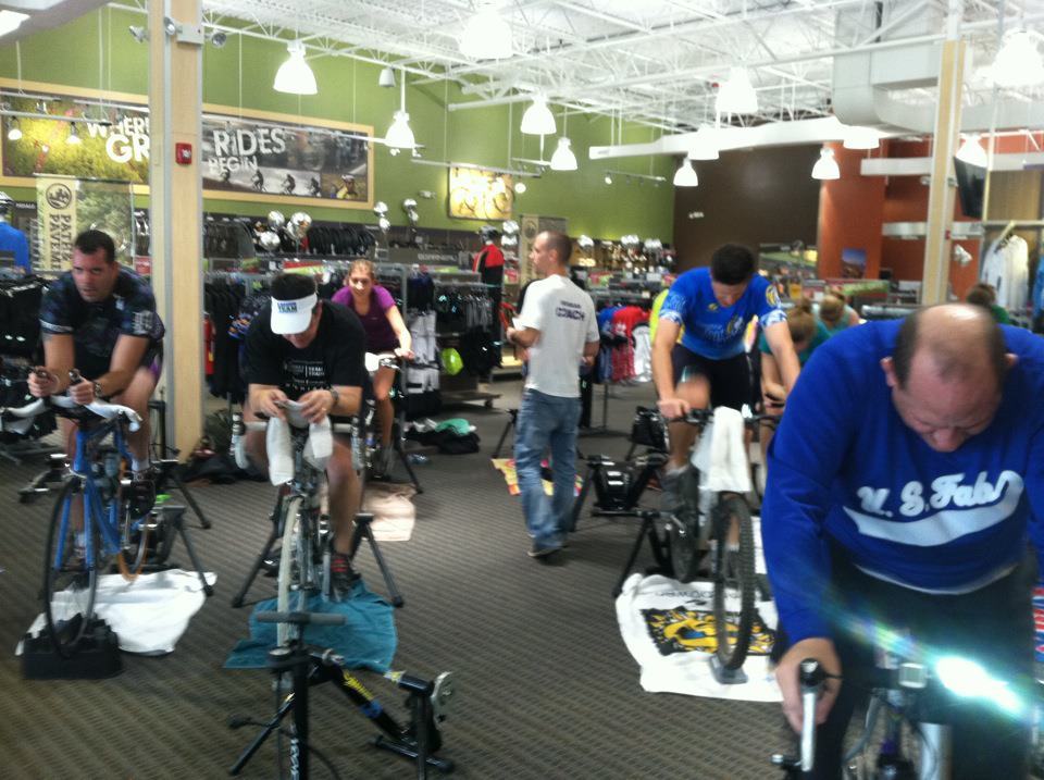 Spinning at Performance Bike. That’s me above the sun towel.